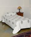 Bedcover Grey Leaf Mughal Rose Blue Paula