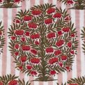 100% 60's cotton cambric Hand block printed fabric. PRINT:PADMA BUTI ON SAGE. Width of fabric- 110 cms Lightweight and breathable cotton cambric fabric, printed in our studio. Perfect for crafting garments that drape beautifully. It can also be used for dressing lampshades or bespoke home décor accents.